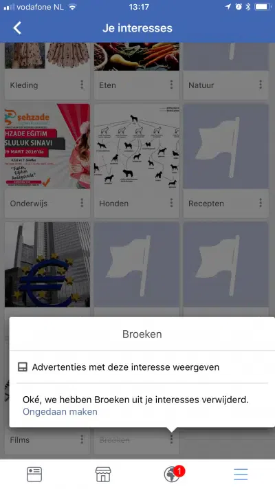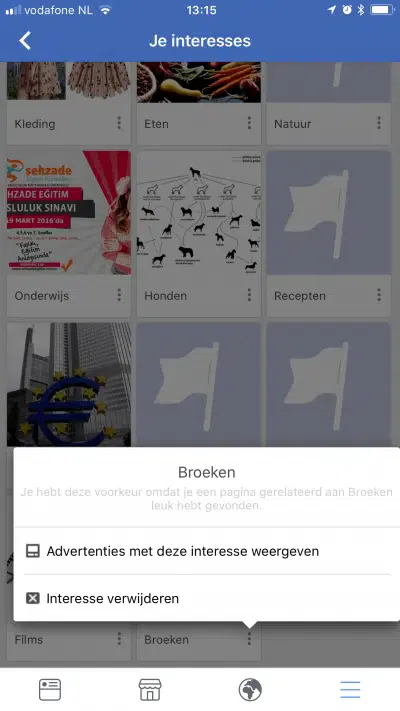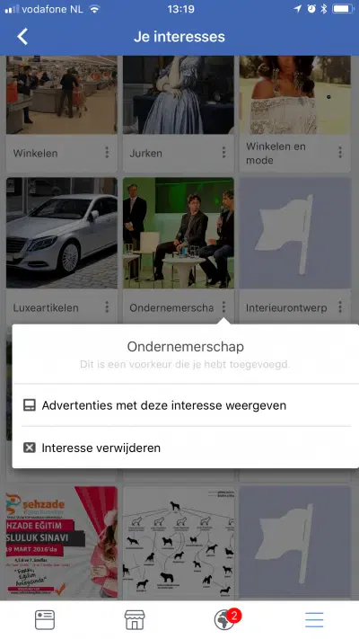 Deze interesse kan je vervolgens verwijderen door op de 3 stippen te drukken en Interesse verwijderen te kiezen.