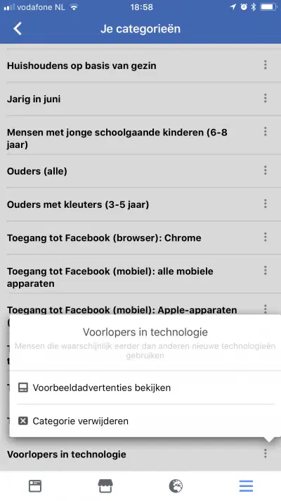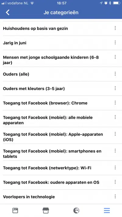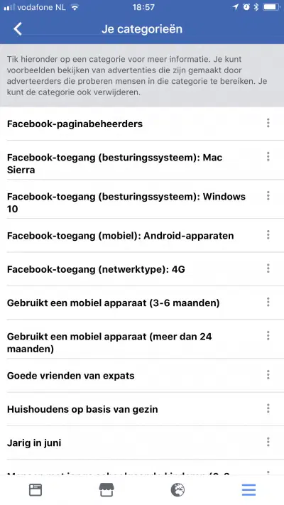 In je categorieën zie je wat Facebook heeft samengesteld op basis van je gedrag.
