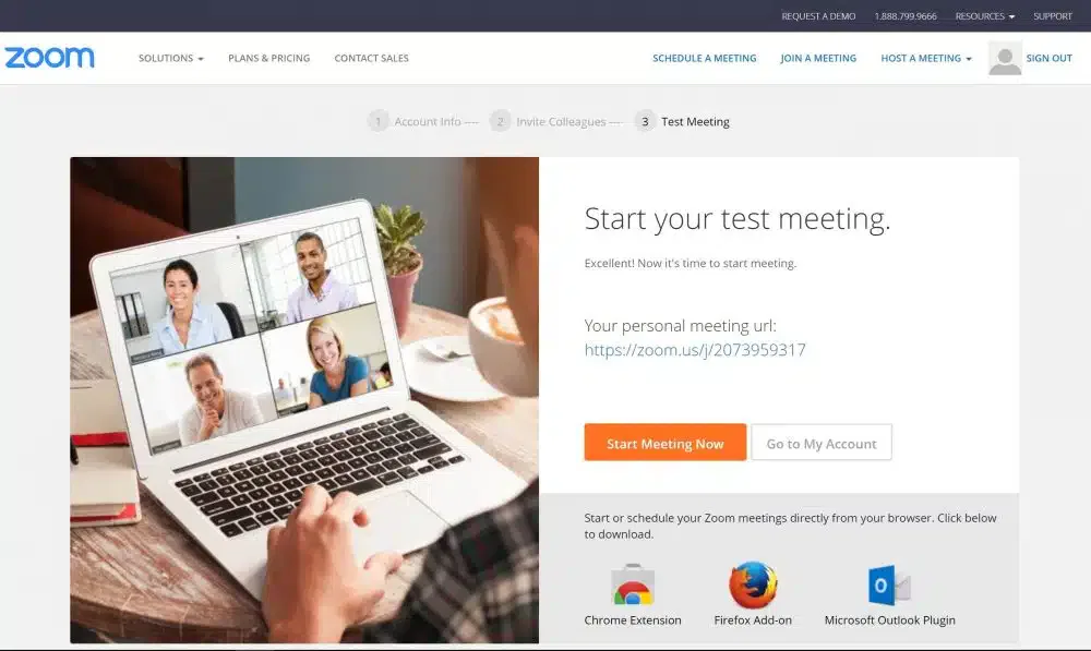 In het laatste scherm krijg je je persoonlijke meeting ID. Hiermee kan je 1:1 sessies houden (gratis) of met 3 of meer mensen online vergaderen tot 40 minuten.