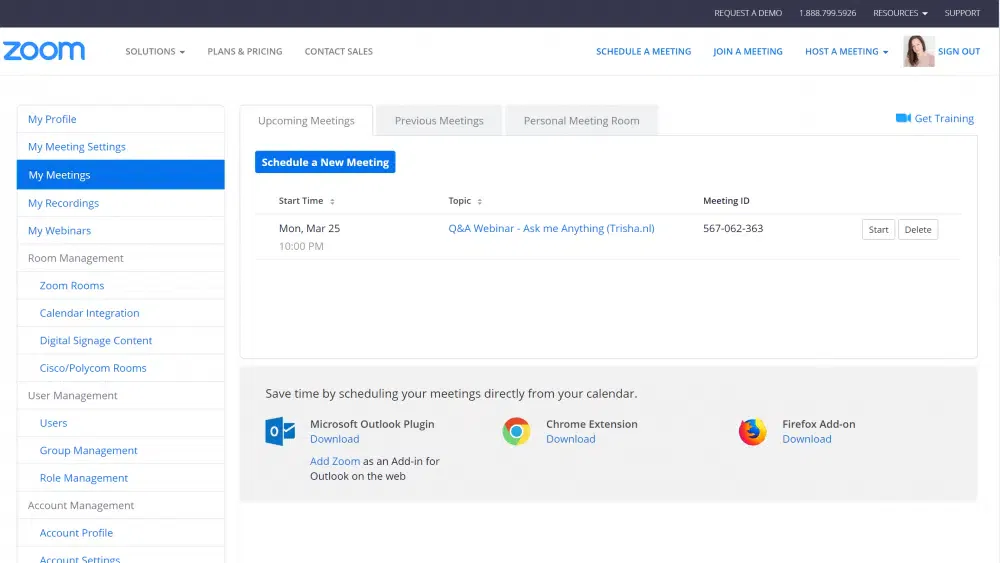 Ga in Zoom naar Meetings in het linker zijmenu.