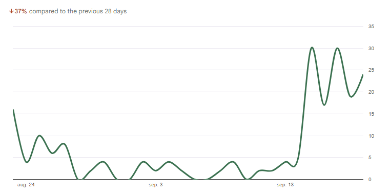 Let op trends, geen momentopnames. Een lichte daling hoeft geen paniek te zijn. Focus op significante wijzigingen over een periode van meerdere dagen. Je kan een afname zien na 26 augustus, als je site verder in orde is zal je ook herstel beginnen te zien in de komende weken.